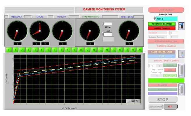 During this procedure, the test operator is prompted to input required data and when executed, the automated testing process would incrementally increase the frequency to the hydraulic jacks while recording and displaying real time measurements such as frequency, piston stroke, velocity, compression and tension loads at each step of the testing process. A final plot of the load velocity characteristic curve and a pass/fail result was displayed on screen to the test operator. Once all the elements had been tested and the process was complete, the measured data and a pass-fail result were visually displayed on the screen. The test operator then had the option save and print a copy of the test report which would accompany the device under test through the various production stages.